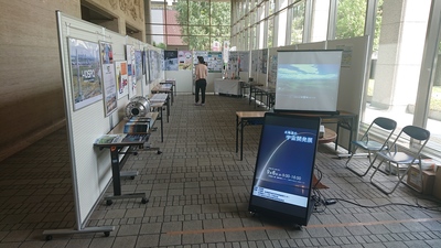 道庁の道政広報コーナーにおける「北海道の宇宙開発展」の出展風景の写真